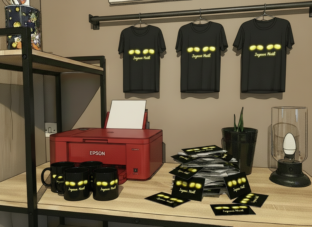 Après la création de leurs cartes de visite, nos deux lutins ont œuvré toute la nuit pour produire des articles arborant leur nouveau logo.