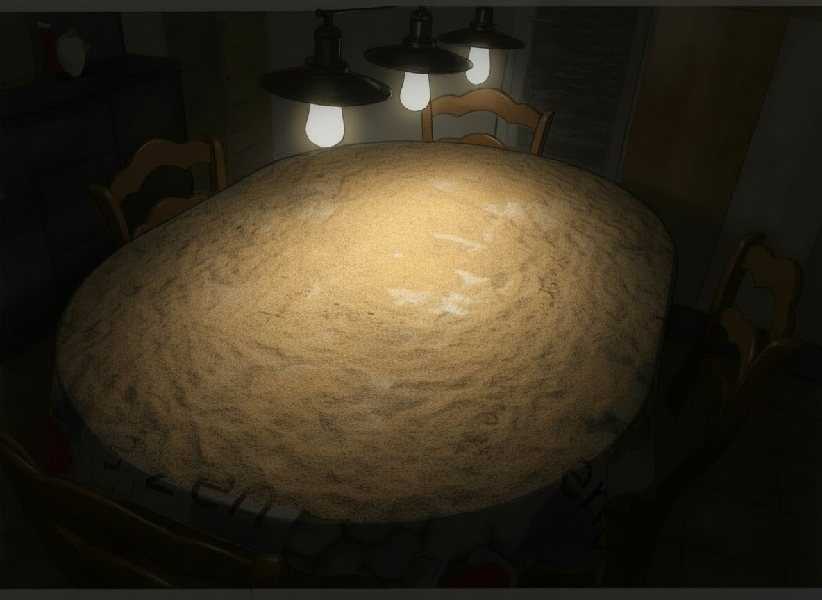 La maison est envahie d'une épaisse fumée, semblable à un brouillard dense.