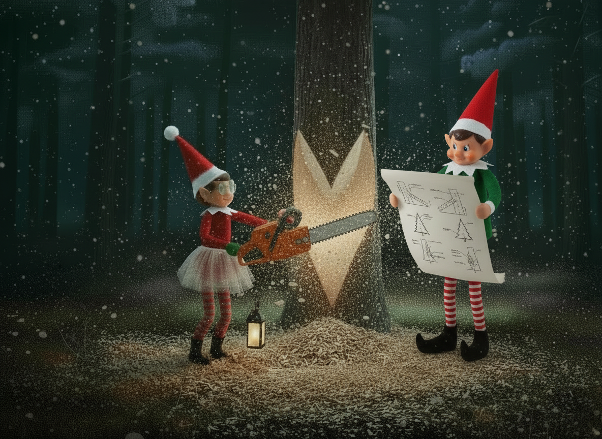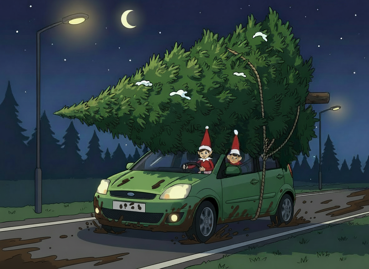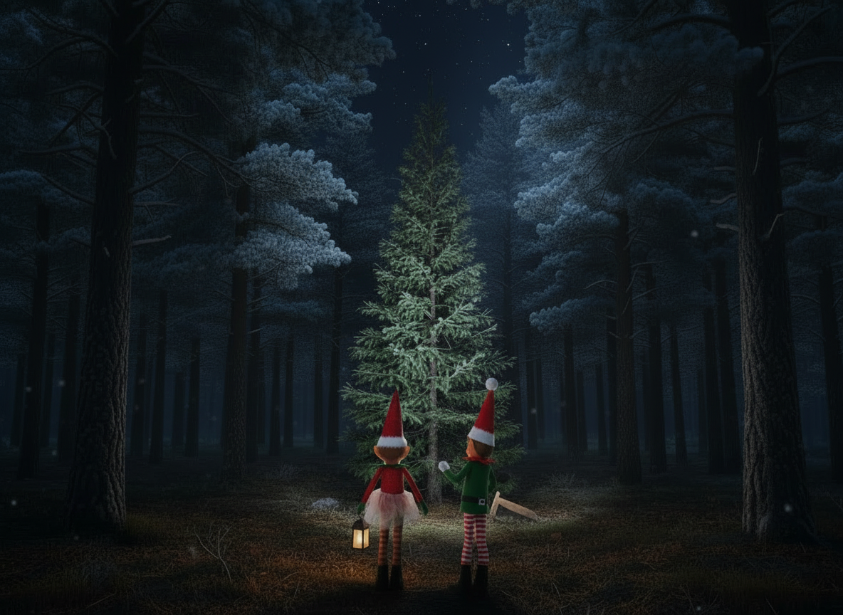 Les lutins ont juste eu le temps de rentrer et dissimuler le sapin avant que le soleil ne se lève.
