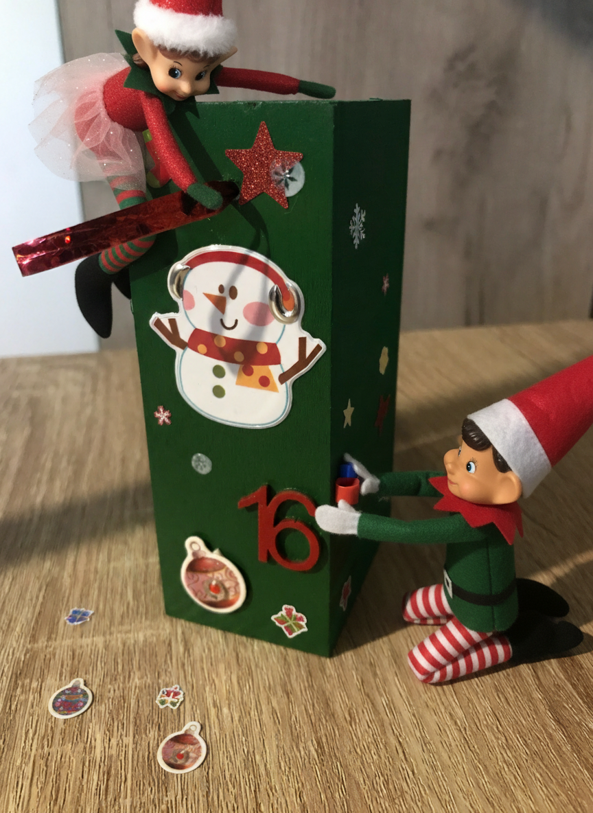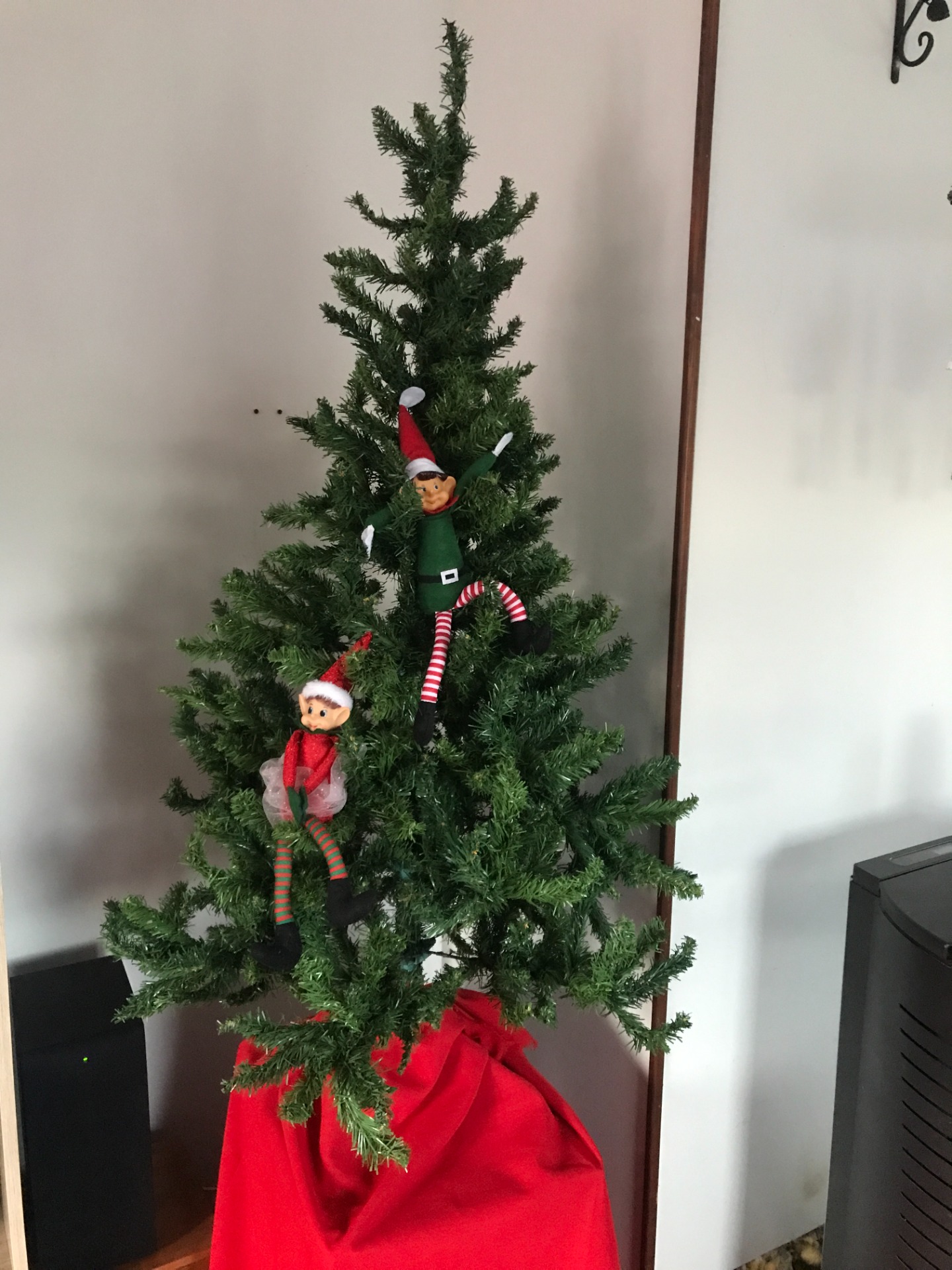 Les Lutins ont rapporté le sapin qu'ils avaient abattu la veille, l'ont introduit dans la maison pour le mettre en place et le parer.