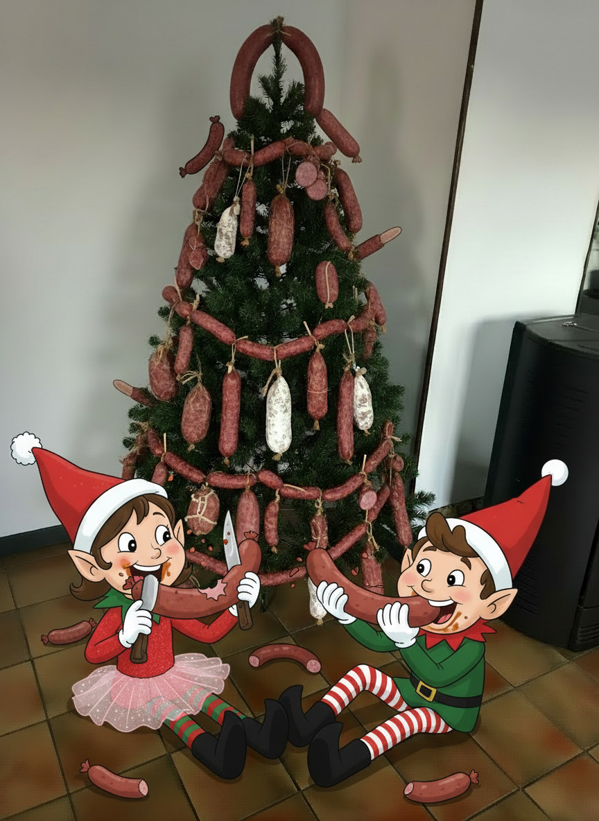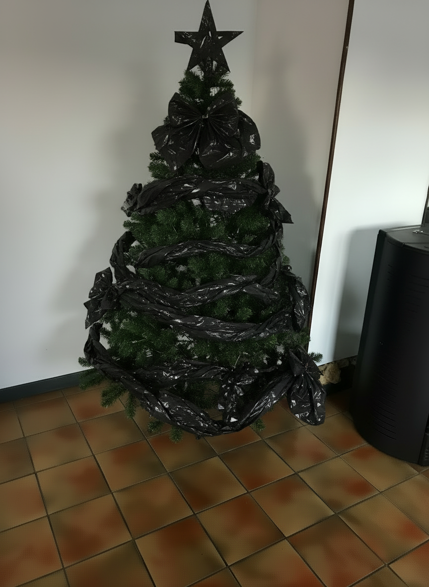 Ils ont d'abord tenté d'orner le sapin avec des sacs poubelles, mais Croquette n'a pas vraiment apprécié, le trouvant plutôt triste.
