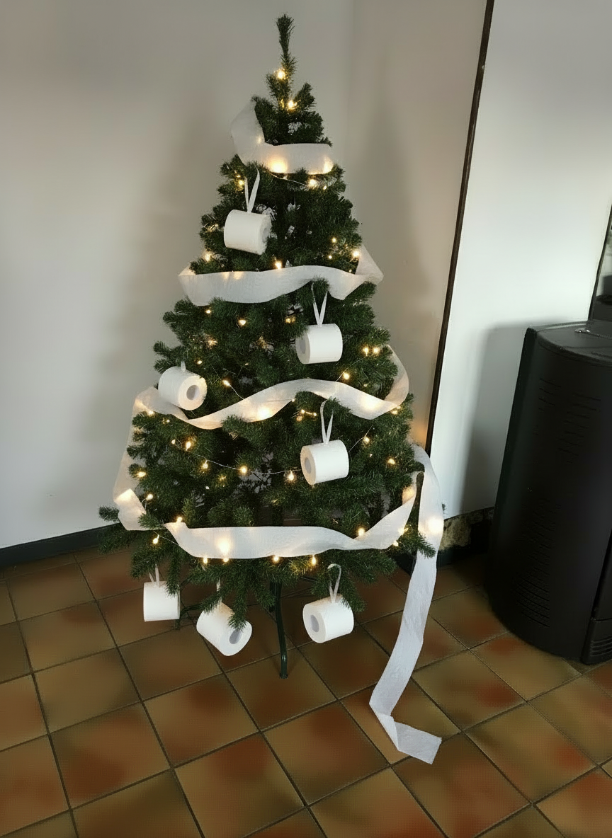 Ils n'ont pas réussi à dénicher les ornements prévus à cet effet, alors ils ont employé leur touche imaginative pour créer le plus magnifique sapin de l'année.