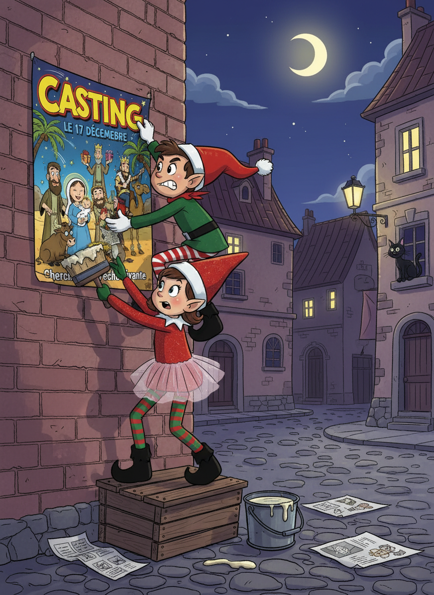 Après la décoration du sapin hier, Pepsi et Croquette ont consacré la nuit à coller des affiches pour trouver la crèche idéale à placer sous le sapin.