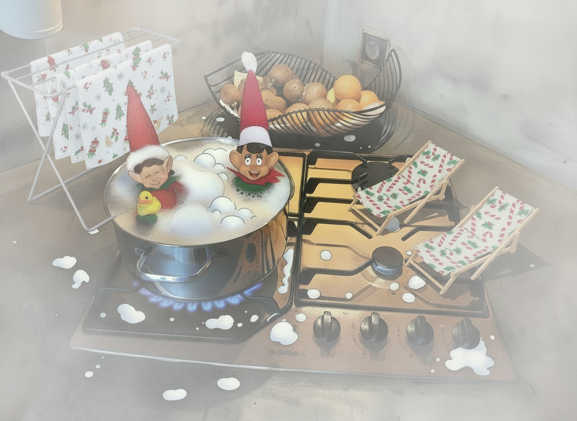 Hier après-midi, nous nous sommes rendus dans le centre aquatique de Val de Loisirs pour un petit moment de relaxation. De retour à la maison, les Lutins ont entendu nos discussions à ce sujet. Cela a dû leur donner quelques idées car une fois que nous étions couchés, ils se sont permis une petite nuit de relaxation.